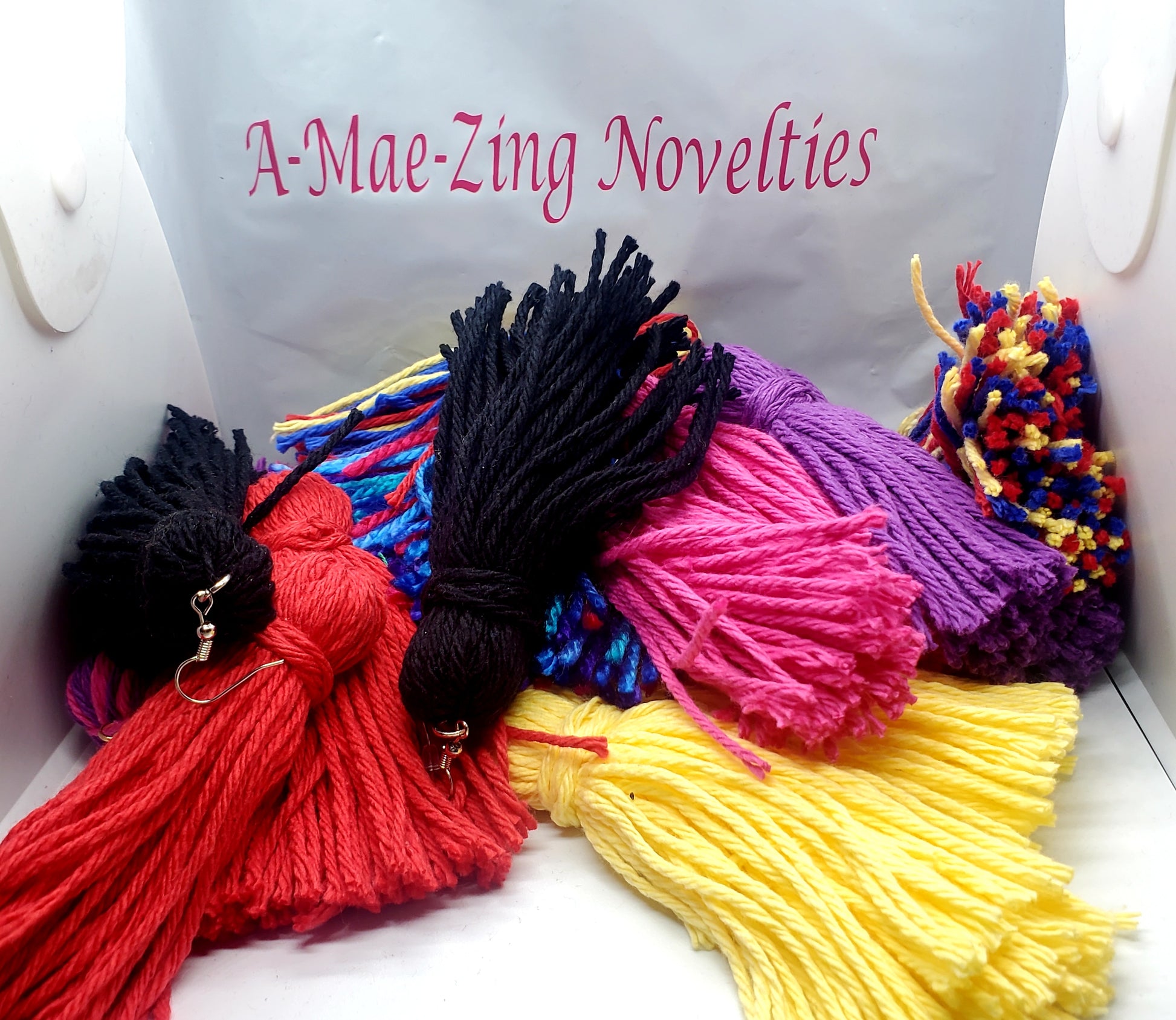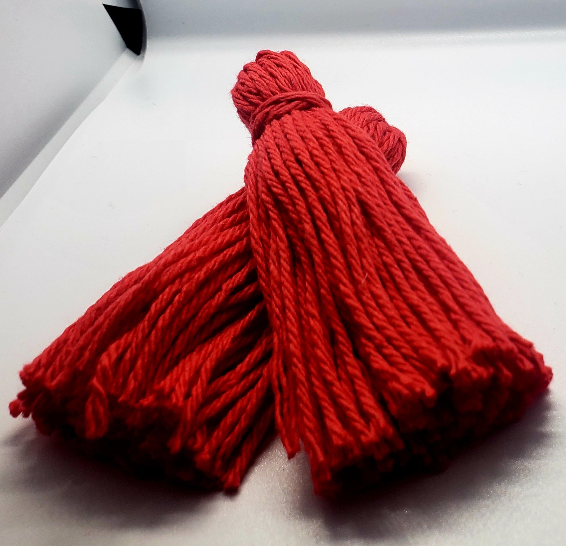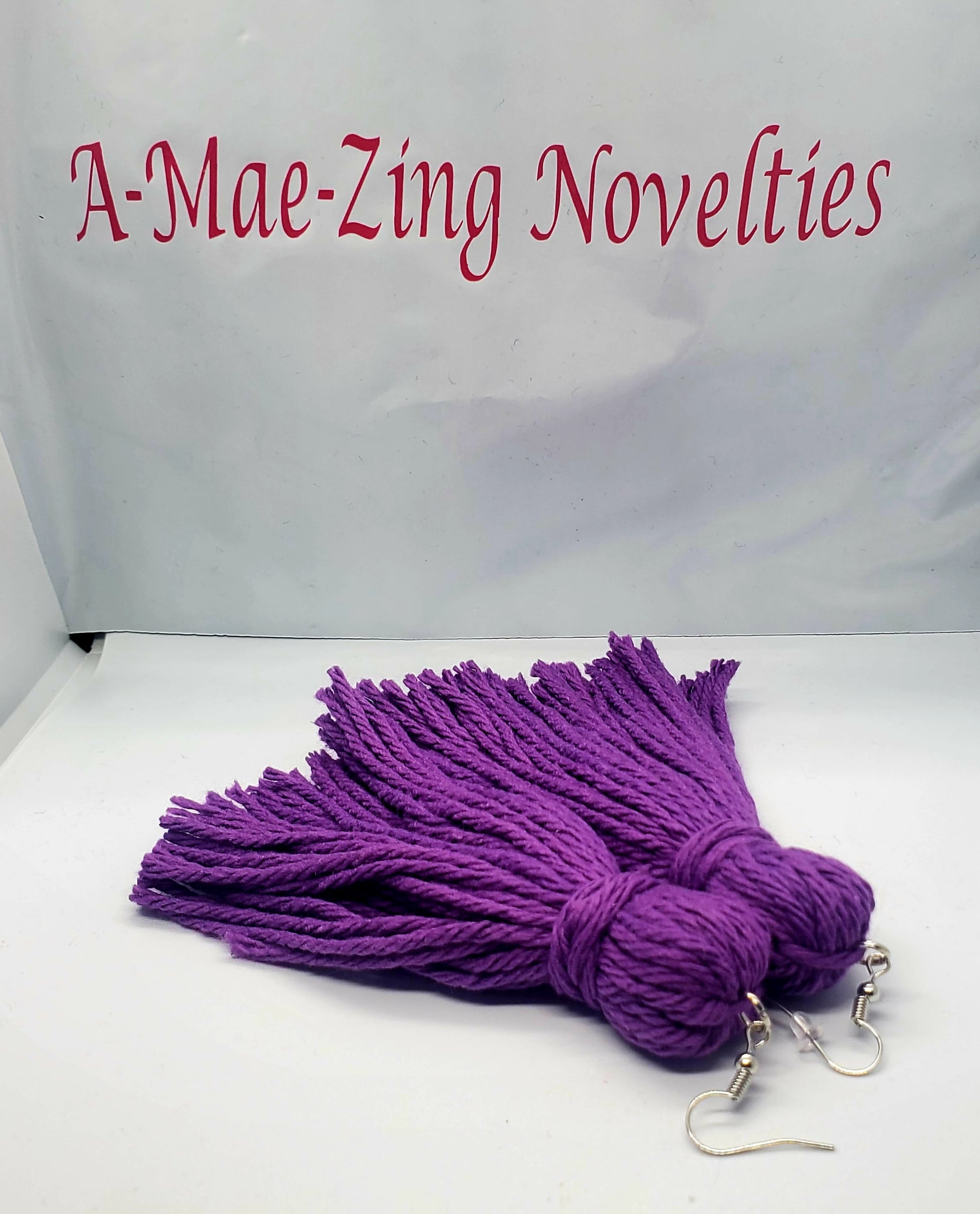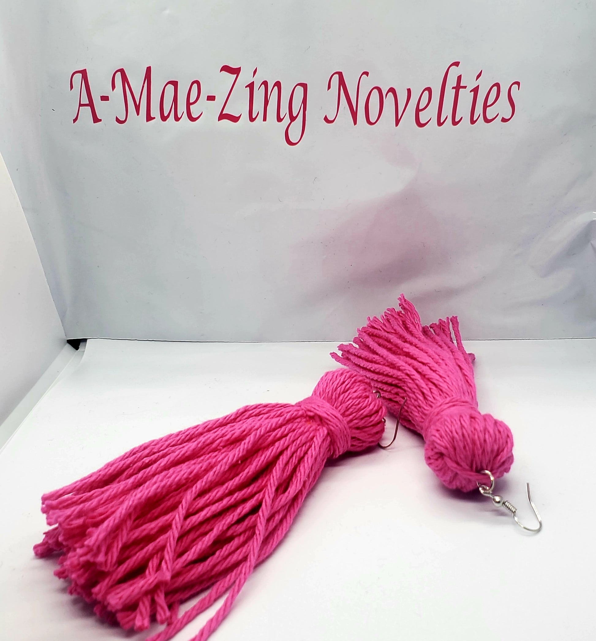 Handmade by me. Tassel Earrings made with 100% cotton yarn.